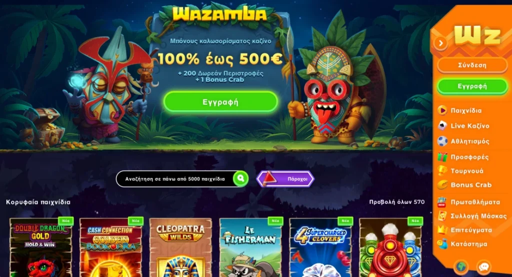 Ζήστε την αδρεναλίνη στο Wazamba Casino, όπου συναρπαστικές gaming εμπειρίες περιμένουν κάθε νέο παίκτη. Αμέσως μετά την εγγραφή, αποκτάτε πρόσβαση σε μια τεράστια βιβλιοθήκη με πάνω από 9.600 παιχνίδια, σχεδιασμένα για ομαλή εμπειρία σε όλες τις συσκευές. Τα νέα μέλη μπορούν να διεκδικήσουν ένα γενναιόδωρο μπόνους καλωσορίσματος 100% έως €750 και 200 δωρεάν περιστροφές για να ξεκινήσουν αμέσως. Εγγραφείτε σήμερα και ζήστε τη συγκίνηση των άμεσων κερδών στο Wazamba!
